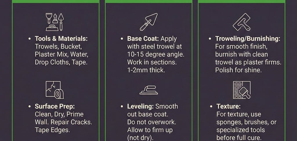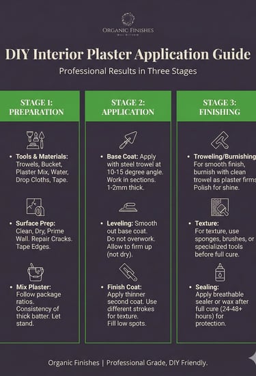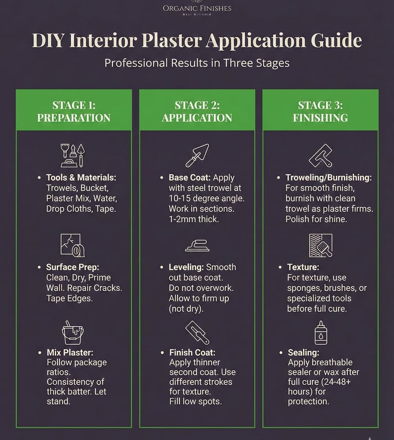 The final stage is where true craftsmanship emerges. For a smooth, polished look, burnish the plaster with a clean trowel as it firms, then polish for a captivating shine. If texture is your vision, introduce sponges, brushes, or specialized tools before the plaster fully cures. The magic happens during this creative phase. Once your plaster has fully cured—typically 24-48+ hours—protect your masterpiece. Apply a breathable sealer or wax from Organic Finishes to ensure lasting beauty and durability. With these direct steps, you're not just plastering a wall; you're crafting an experience.