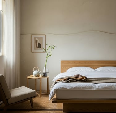 This bedroom is a testament to how organic finishes can create spaces that are both beautiful and beneficial for well-being. The plaster allows the natural light to play across its textured surface, creating subtle shifts in shadow and light throughout the day, adding to the room's dynamic yet peaceful ambiance. Choosing organic plaster is an investment in timeless design and a healthier home.